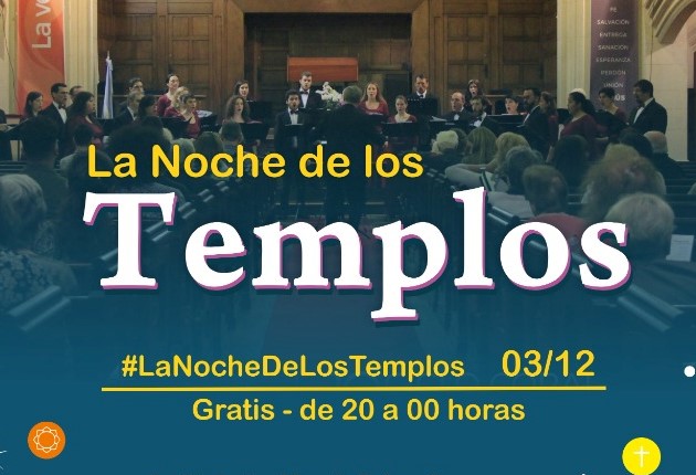 La presentación de nuestro coro institucional, dirigido por Lorena Rojas, tendrá lugar en el marco de la iniciativa “La Noche de los Templos”, auspiciada por el Gobierno de la Ciudad Autónoma de Buenos Aires. La actividad nocturna, que se brindará de manera gratuita e iniciará a las 20 h y concluirá a la medianoche, además del concierto, contará con otras ofertas culturales que se detallan en la imagen.