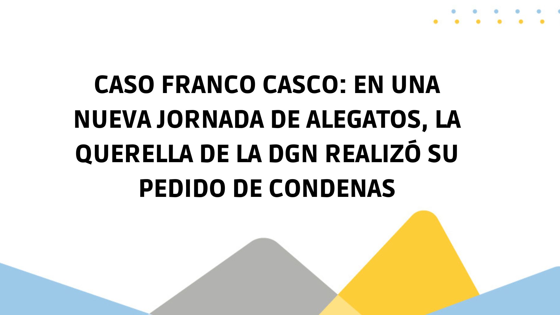 La querella de la DGN realizó el pedido al Tribunal de las condenas para los imputados tras argumentar que las pruebas producidas en el debate confirmaron la hipótesis acusatoria y que Franco Casco fue víctima de tortura seguida de muerte y de desaparición forzada seguida de muerte. Asimismo, consideraron probado que hubo funcionarios de asuntos internos de la Policía provincial que incurrieron en el encubrimiento de los hechos.