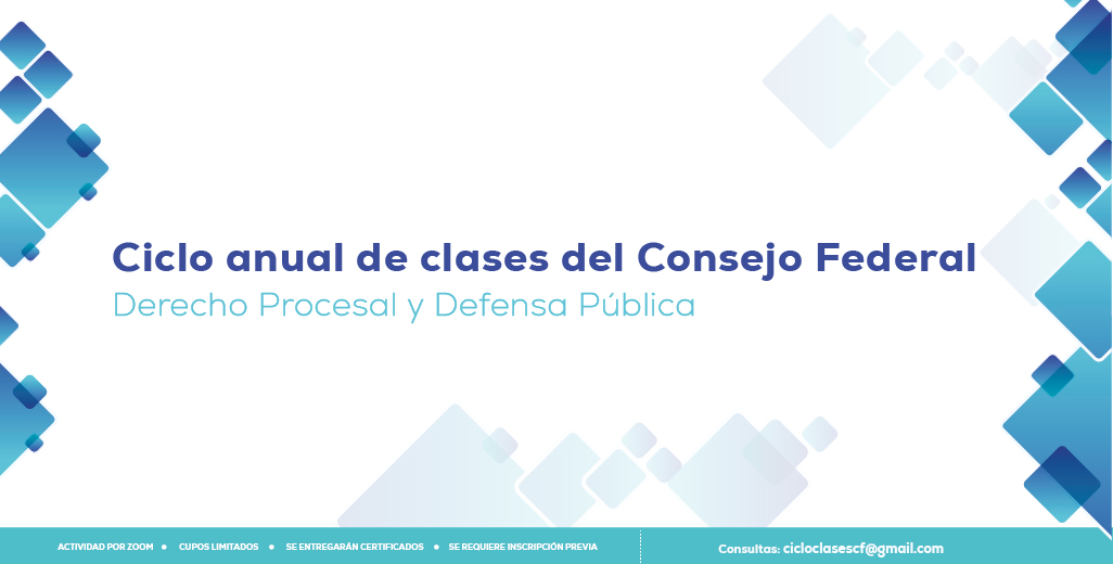 Esta actividad forma parte del ciclo anual de clases virtuales organizado por el Consejo Federal de Defensores y Asesores Generales de la República Argentina, destinadas a los/as integrantes de la defensa pública de todo el país. En él se abordan temas procesales civiles, procesales penales, de prueba y de ejecución de la pena, entre otros.