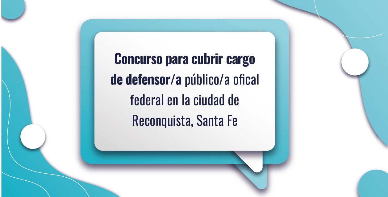 La Defensoría General de la Nación (DGN), a través de la Resolución DGN N°759/25, convoca a concurso público de antecedentes y oposición para cubrir el cargo de Defensor/a Público/a Oficial Federal del interior del país con asiento en la ciudad de Reconquista, provincia de Santa Fe (CONCURSO Nº222).