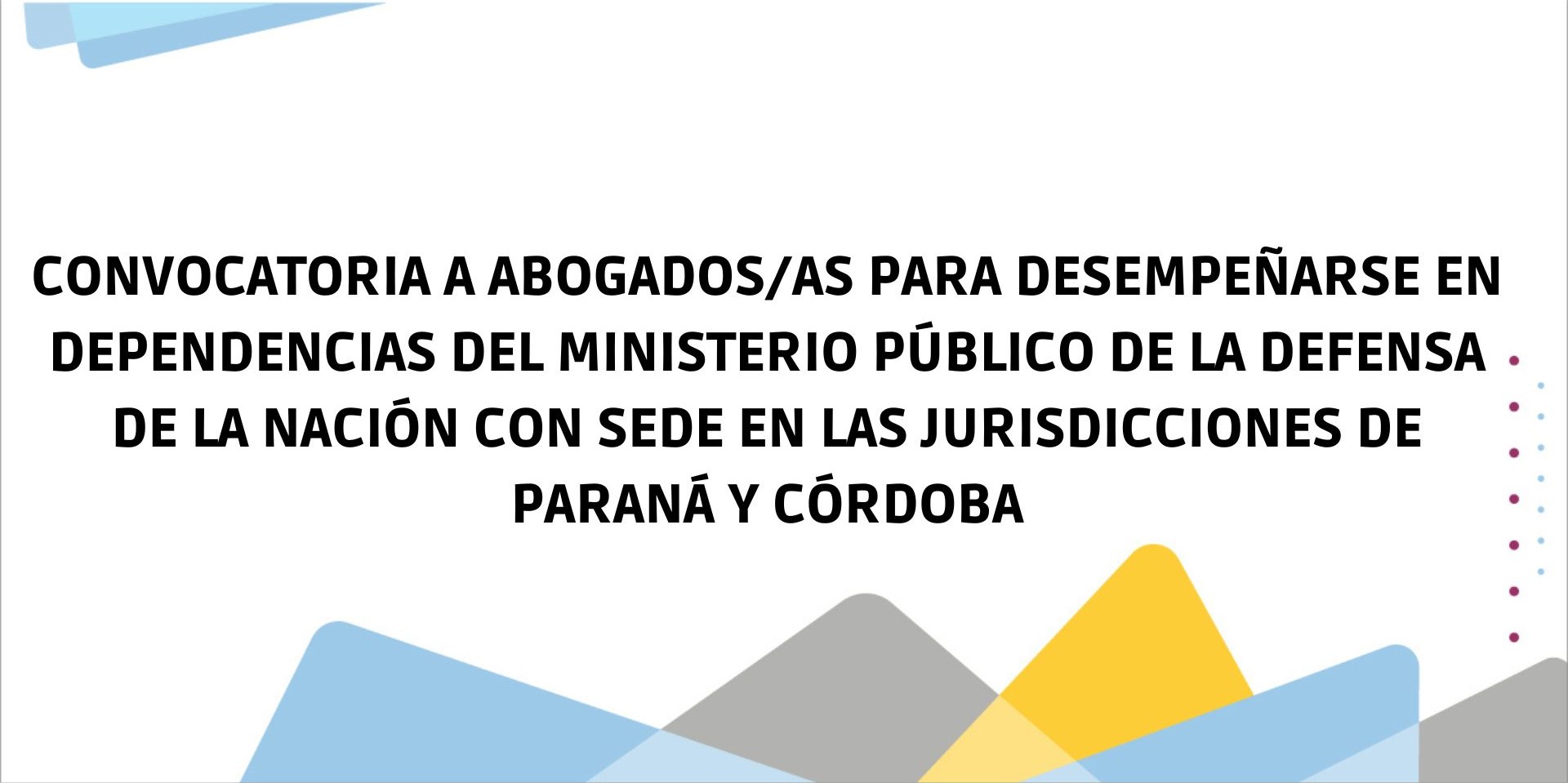 La Defensoría General de la Nación (DGN), a través de la Resolución DGN Nº550/2023, convoca a examen para el ingreso al agrupamiento Técnico Jurídico (TJ) para desempeñarse en las dependencias del Ministerio Público de la Defensa de la Nación (MPD) con sede en las ciudades de Paraná (TJ 230); Concepción del Uruguay (TJ 231); Victoria (TJ 232); Gualeguaychú (TJ 233); Concordia (TJ 234); Córdoba (TJ 235); Río Cuarto (TJ 236); Bell Ville (TJ 237); Villa María (TJ 238); y San Francisco (TJ 239).