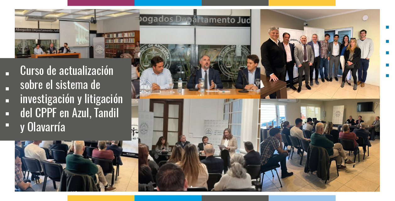 Durante el mes de agosto, las Unidades de Defensa Pública de la jurisdicción de Mar del Plata participaron en tres encuentros del curso de actualización sobre el sistema de investigación y litigación del Código Procesal Penal Federal, organizado por el Colegio Público de Abogados de Azul. Las actividades se desarrollaron en las tres sedes que el Colegio tiene en Azul, Tandil y Olavarría.