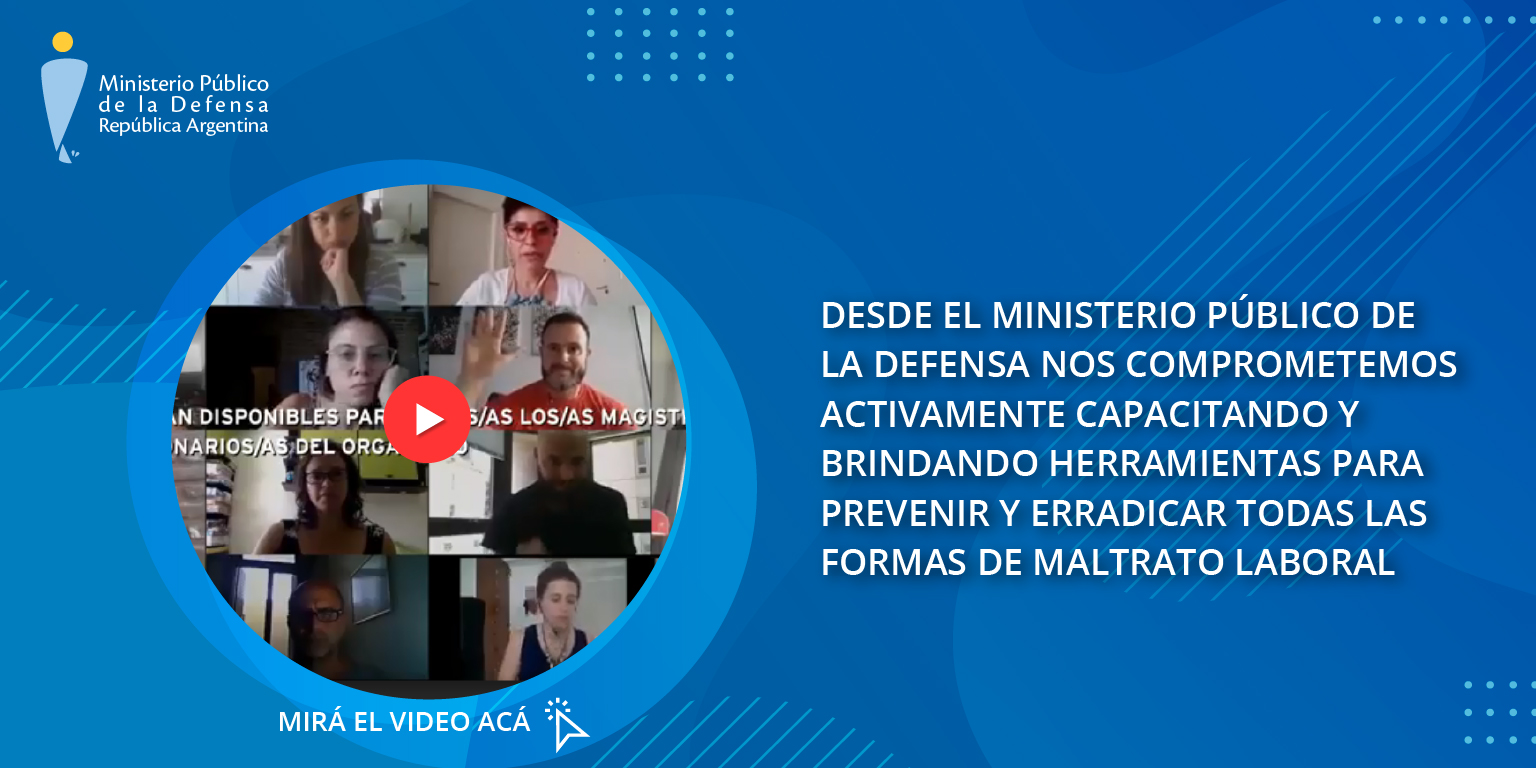 El Ministerio Público de la Defensa presenta su curso obligatorio para para magistrados/as y funcionarios/as "Prevención del maltrato y discriminación por motivos de género en el trabajo", que procura prevenir y erradicar todas las formas de maltrato laboral.