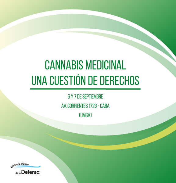 Los próximos 6 y 7 de septiembre se realizarán las jornadas “Cannabis medicinal. Una cuestión de derechos", organizado por la Secretaría General de Capacitación y Jurisprudencia de la Defensoría General de la Nación. El encuentro tendrá lugar en el Salón Auditorio de la Universidad del Museo Social Argentino, Corrientes 1732, CABA, entre las 14.30 y 18.30 h.