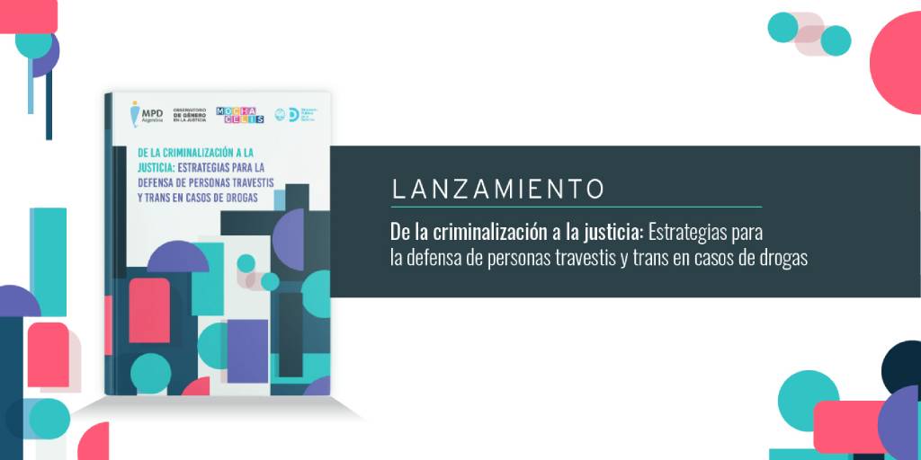 El próximo jueves 27 de noviembre se llevará a cabo la presentación del libro “De la criminalización a la justicia: estrategias para la defensa de personas travestis y trans en casos de drogas”, elaborado por la Defensoría General de la Nación (DGN), la Defensoría General de la Ciudad Autónoma de la Ciudad de Buenos Aires, el Observatorio de Género en la Justicia del Consejo de la Magistratura de la Ciudad de Buenos Aires y la Asociación Civil Mocha Celis. El evento se realizará a las 14:30 h en el Auditorio Díaz Lestrem de la DGN (Callao 970, CABA).