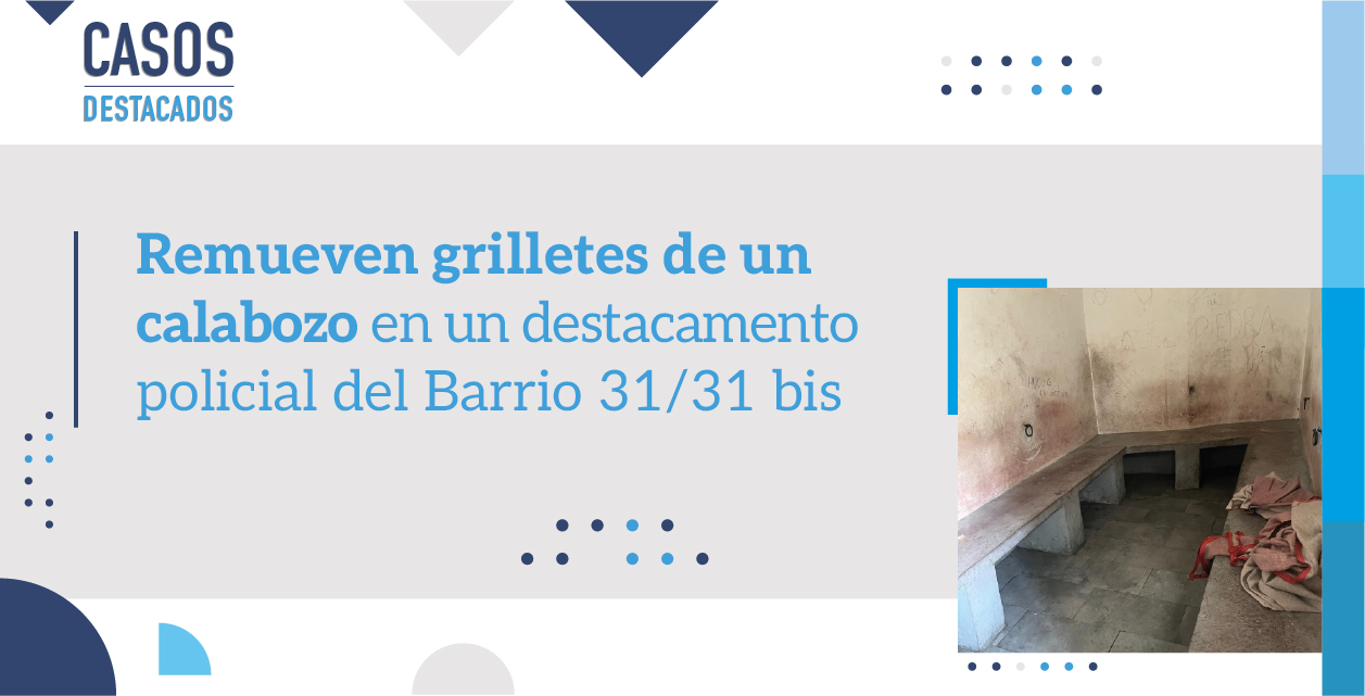 La Defensoría General de la Nación (DGN) logró, a través de la interposición de un habeas corpus, que la Policía de la Ciudad de Buenos Aires remueva los grilletes que estaban empotrados en el calabozo de la División Unidad Táctica de Pacificación I, un destacamento de la Policía de la Ciudad de Buenos Aires en el Barrio 31/31 bis de Retiro. Los grilletes eran utilizados de manera permanente para mantener esposadas a las personas detenidas en el lugar, una práctica prohibida que podría ser considerada una vejación o incluso tortura, al ser sostenida en el tiempo.